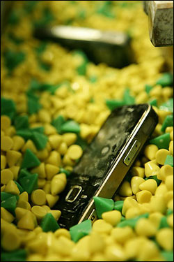 振动耐磨试验的目的是把产品放在特殊的振动磨损机中,使用特殊的磨损颗粒来模拟样品在正常使用状况下的磨损。这种测试只适用于整个工件(比如配有电池的手机)。在产品的研发阶段,可以对产品的塑料模型进行磨损测试,来对产品表面的耐磨性进行评估。